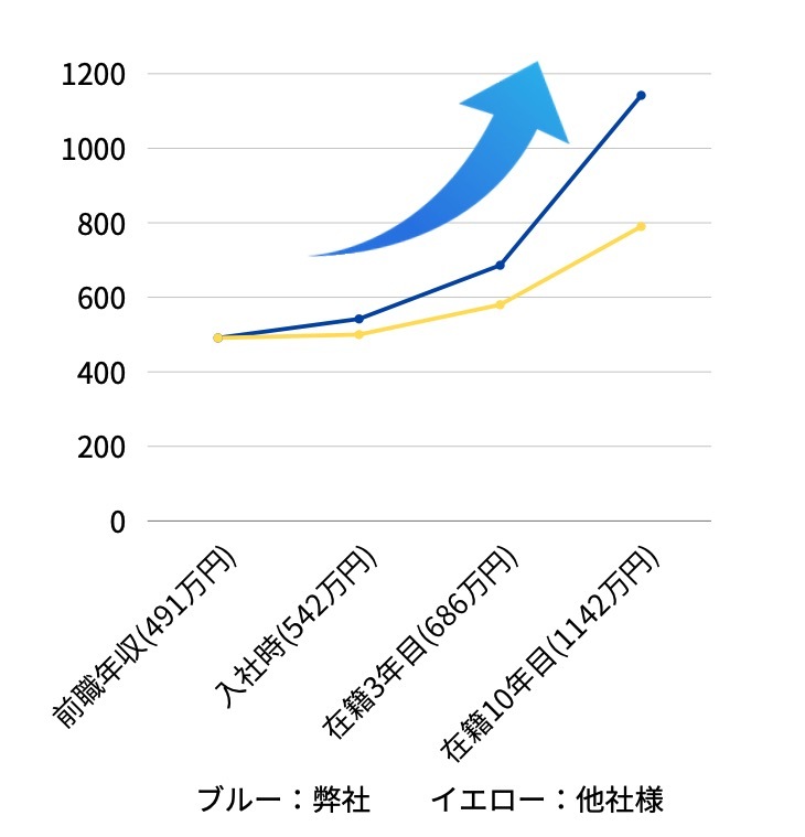 この3つを満たすNeuealleなら、現在の年収が400万円台として、4年目から年収800(単価85万円)、11年目から1,000万(100万円)以上を目指せます。